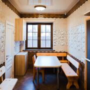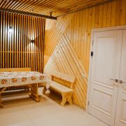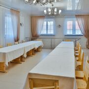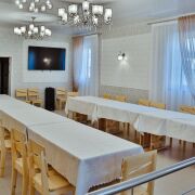 - банкетный зал (≈ 35 мест), множество банкетных столов, стульев, скамеек
