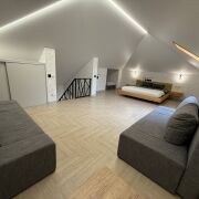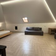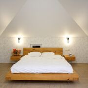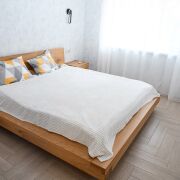 - Три кровати из массива дуба размером 180x200 см и три раскладных двуспальных дивана.