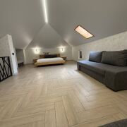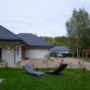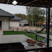 - Просторная кухня-гостиная с выходом на террасу, ведущую к зоне отдыха и бане.