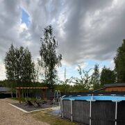 На территории также есть бассейн диаметром 4,5 м и высотой 1,2 м — идеальное место для летнего отдыха. Детям и взрослым понравится батут, который добавит веселья в ваш досуг.