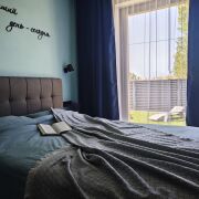 В доме три комнаты. В двух комнатах - двуспальные кровати и маленькие диваны; в третьей комнате - двуспальная кровать. Вместимость дома - до 8 человек. Дети до 3х лет размещаются бесплатно.