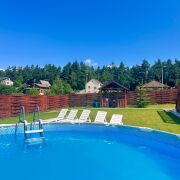 На территории ещё один бассейн с шезлонгами. Настольный теннис. Бадминтон. Беседка с зоной барбекю.