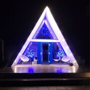 Погрузитесь в атмосферу полного релакса в стильном треугольном доме-шалаше. Это не просто отдых, а эстетика жизни: высокие потолки, панорамные окна, уютная лофт-спальня и терраса для утреннего кофе под пение птиц. Идеальное сочетание близости к природе, современного комфорта и фотогеничности в каждой детали.