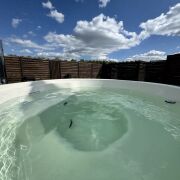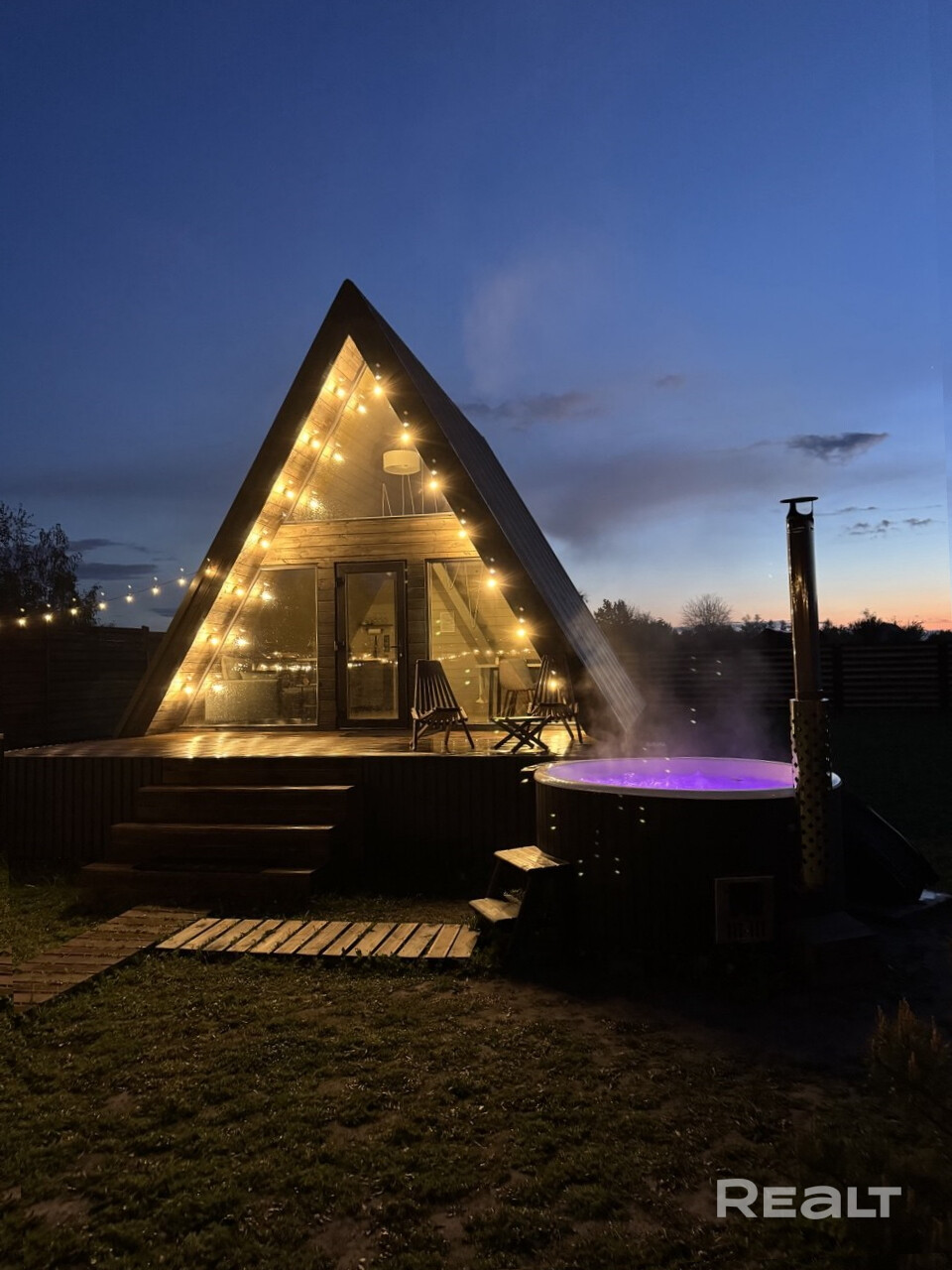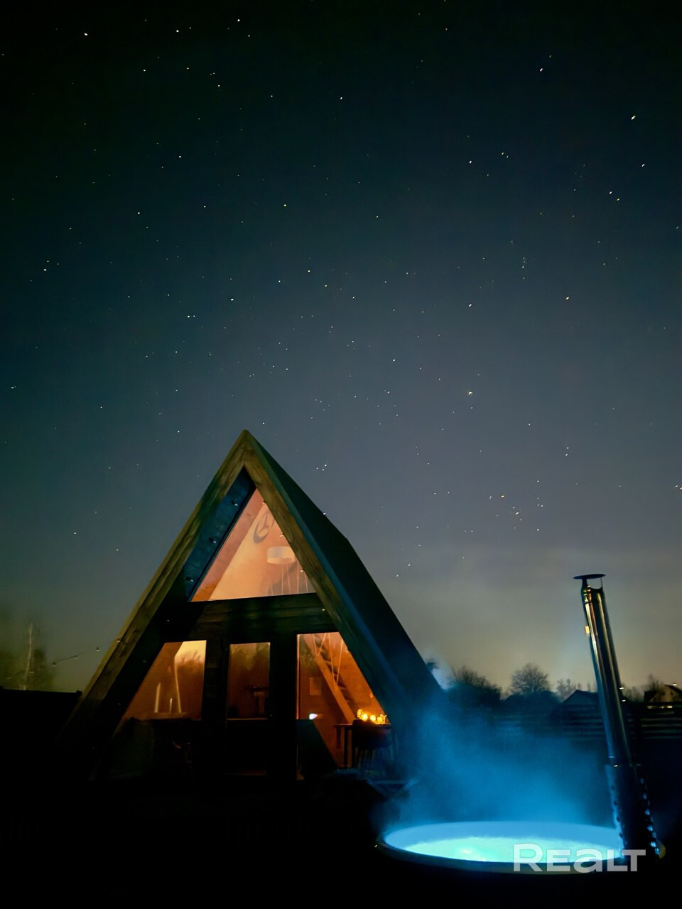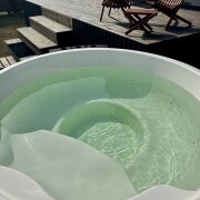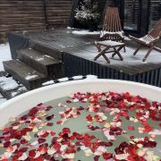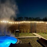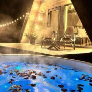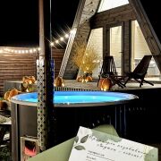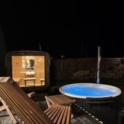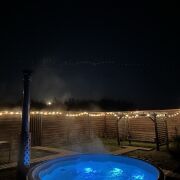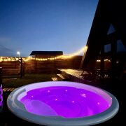 Акриловая джакузи на дровах. Наслаждайтесь теплом и расслаблением в акриловой джакузи с аэромассажем под звёздами или зимней морозной свежестью.