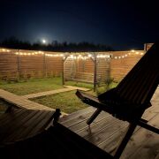 Деревянные качели. Покачивайтесь на деревянных качелях и наслаждайтесь мягким светом гирлянд, создающим романтическую атмосферу.