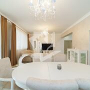 В доме 5 комнат, а так же большая гостиная 35.8 м.кв., большая столовая для приема гостей, 4 санузла, сауна, бассейн, постирочная, гардеробная, парковочное место во дворе под навесом.