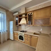 Имеется кухня со всей необходимой бытовой техникой: духовой шкаф, варочная панель, вытяжка, холодильник, электро чайник, кондиционер, при необходимости довезут стиральную машину.
