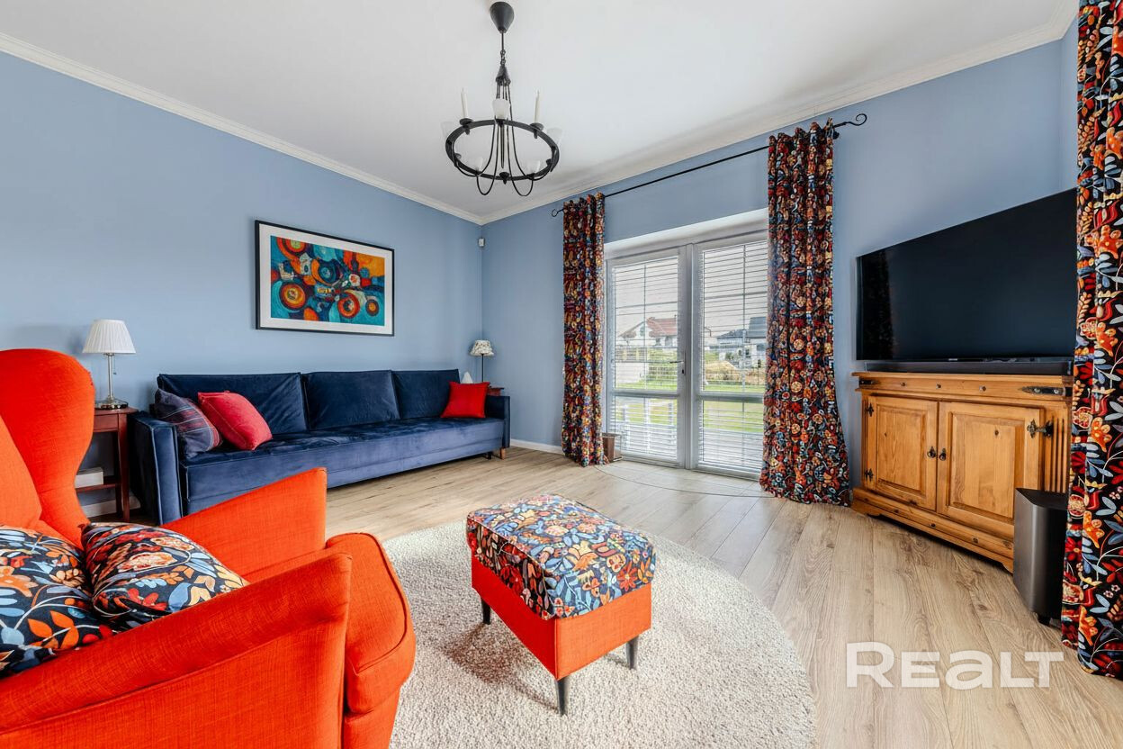 Просторный уютный жилой дом в д. Городище, Минская область (за авторынком). Общая площадь — 210 м², два этажа (мансарда). В доме: 4 спальни, 2 гостиные, столовая, постирочная, 2 санузла. Участок — 17 соток, ухоженный газон, туи и декоративные кустарники, мощёные дорожки, отдельная хозпостройка/гараж. Светлый современный интерьер, мансардные окна, деревянные полы. Отличный вариант для семейной жизни. 7 минут до кольцевой.