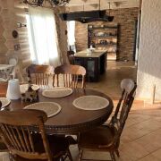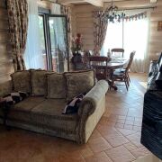 На первом этаже расположены: большая кухня-гостиная, три полноценные жилые комнаты, санузел и терраса.