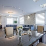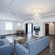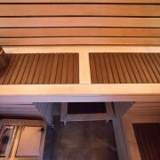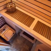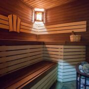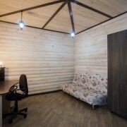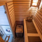 Также на первом этаже расположены две отдельные комнаты по 20 м2 с панорамными окнами и выходом на веранду и улицу. СПА-зона включает в себя сауну, душевую комнату с обливным ведром и два санузла.