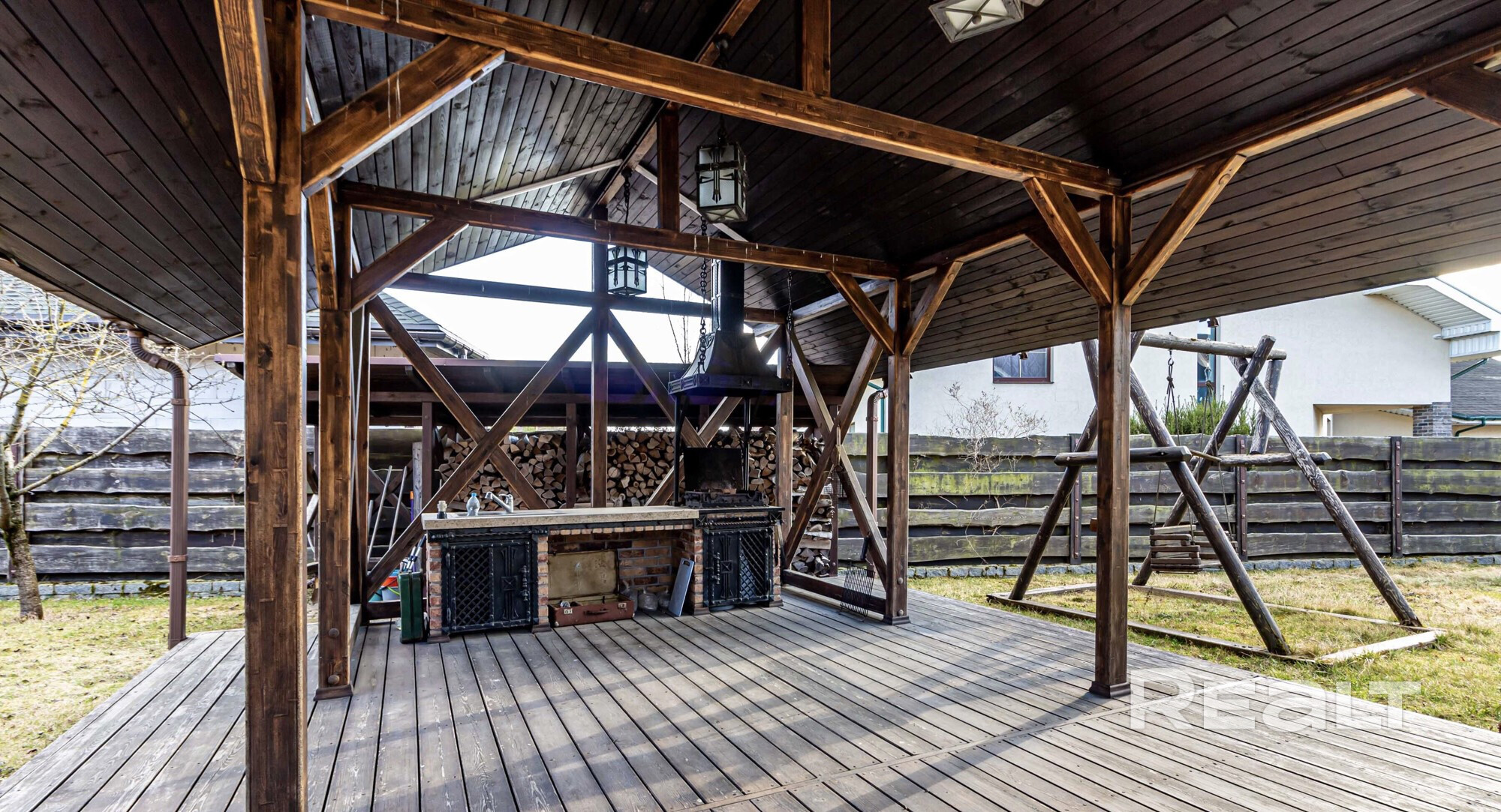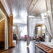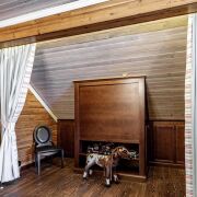 В престижном посёлке сдается дом, включает в себя два уровня: на первом - гостиная, санузел, постирочная, душевая, гараж(используется как место хранения вещей) и сауна. На втором уровне 2 спальнии, 2 гардеробные и санузел. Дом выполнен из клееного бруса премиум-класса от Wooden House. Участок окружён элитным забором из гранита, ковки и дерева с автоматическими воротами, а ландшафтный дизайн дополнен дизайнерским фонтаном, кованой перголой и зоной барбекю с мраморной столешницей.