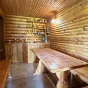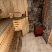- Баня на участке ( деревянная) площадь 50 м в ней бассейн-купель глубиной 2,5 м, в бассейне вода обогащается кислородом. Баня на дровах, комната отдыха, в бане система подогрева полов на электричестве