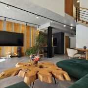 - Кухня-гостиная, спальня, гостевая комната, кабинет, 2 сан. узла, 2 террасы (на каждом этаже)