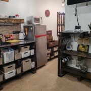 Гостевой Дом (коттедж) с Баней, тёплым Бассейном-купелью и Бильярдом у Михалыча в стиле лофт площадью 110 м2. В ней находится русская баня на берёзовых дровах, бассейн-купель, русский бильярд 10 футов, гостиная, 4 комнаты отдыха и мини-кухня с холодильником, СВЧ-печью, электрочайником, электроплиткой одноконфорочной, посудой — всё, что нужно для комфортного отдыха.