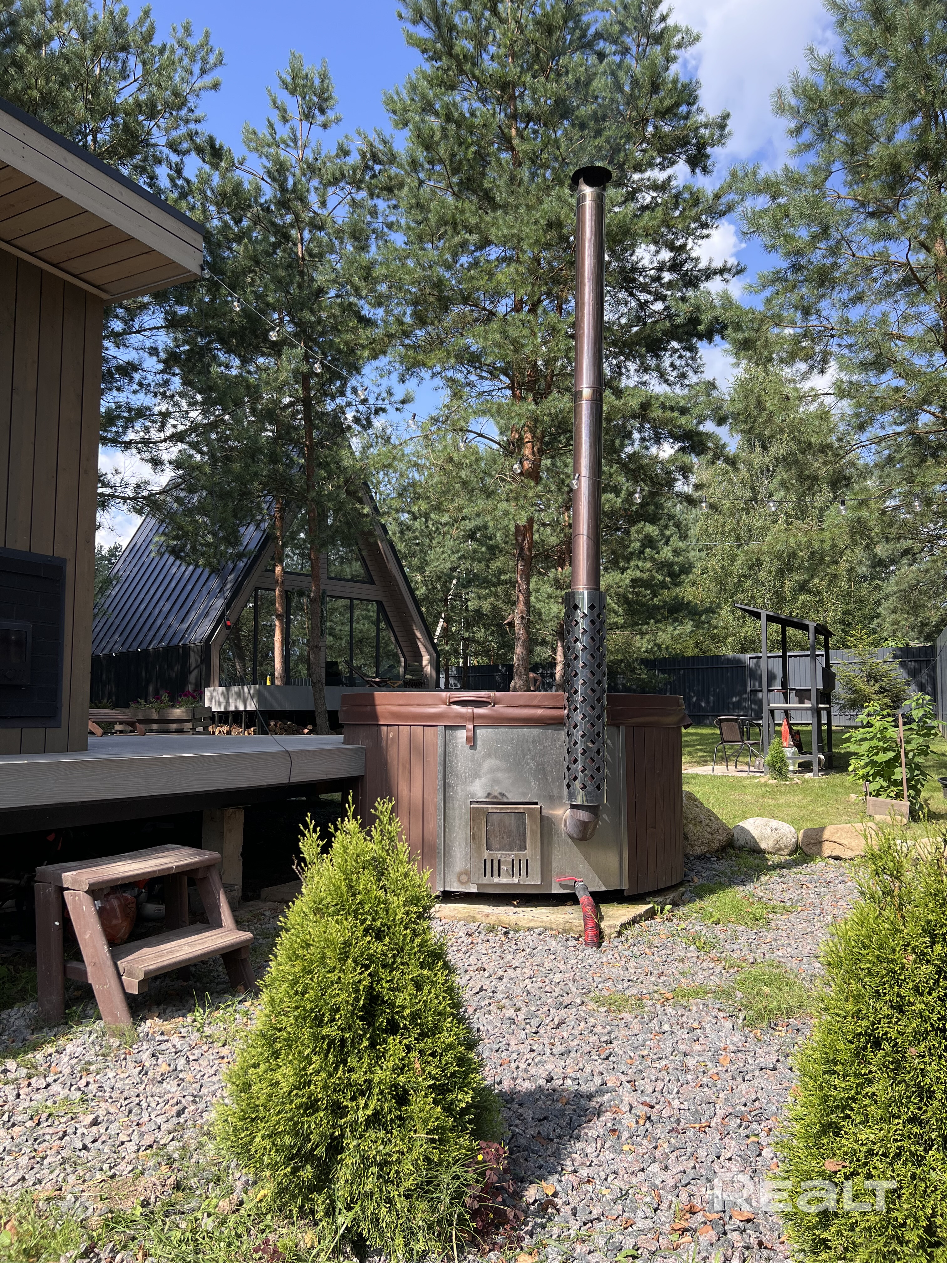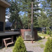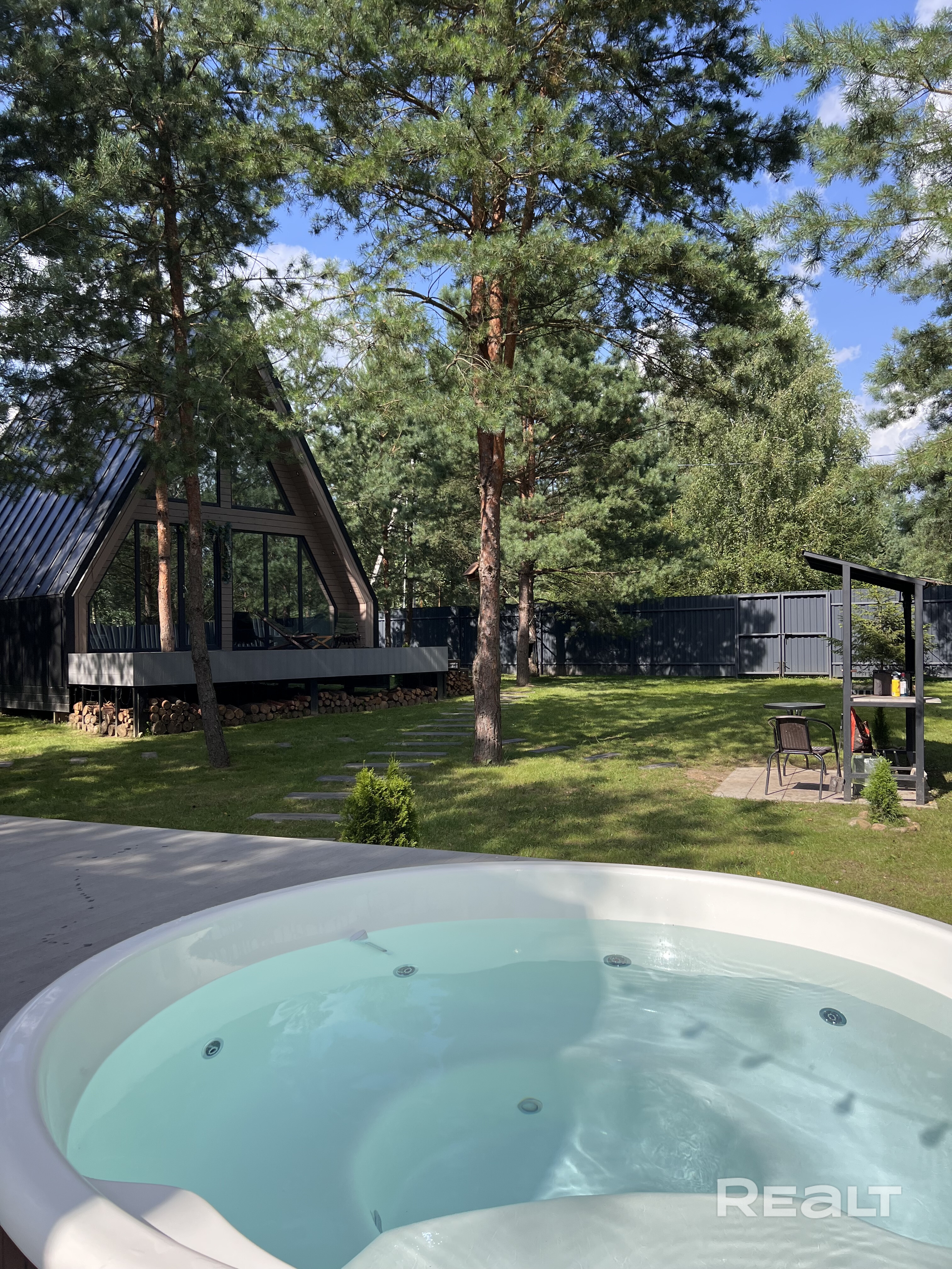 Аренда просторного , современного дома A-frame На территории джакузи и панорамная баня, зона BBQ , а также костровая для уютных вечеров Дом оборудован всем необходимым для комфортного проживания, 2 больших спальных места, теплые полы, индукционная варочная панель, посуда и тд Предоставляются постельные принадлежности, полотенца, средства гигиены, фен