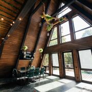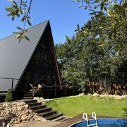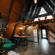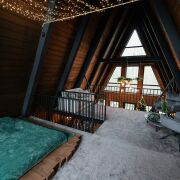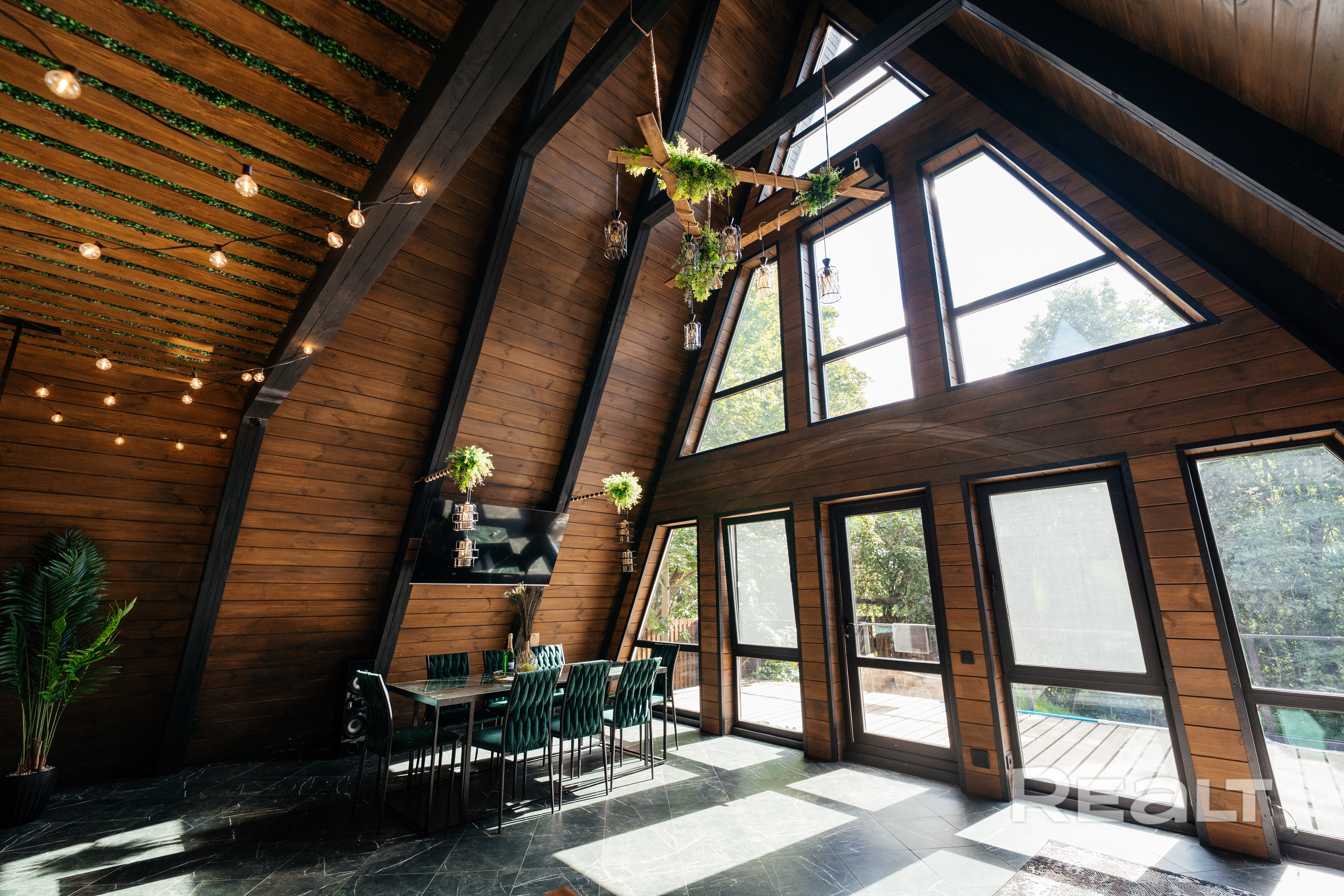 Самый большой А-фрейм в Беларуси. Локация тет-А-тет только открыла свои двери и ждет гостей. Всего 15 км от Минска ( можно добраться на такси). Вместимость 4-10 человек. Полноценная баня и горячая купель. Мангальная и костровая зона В декабре дополнительно фотосессии по спец.цене и поздравление Деда Мороза и Снегурочки