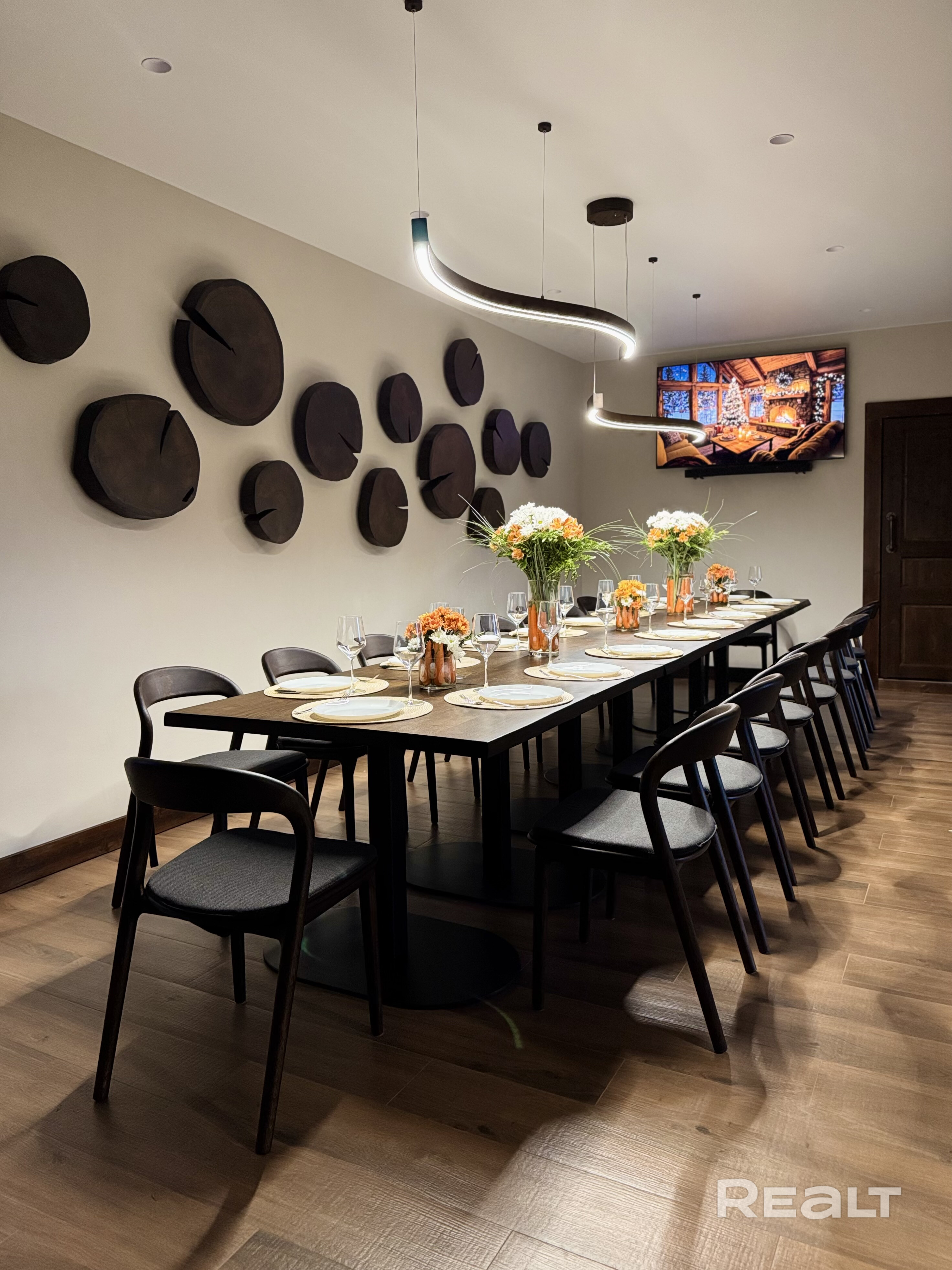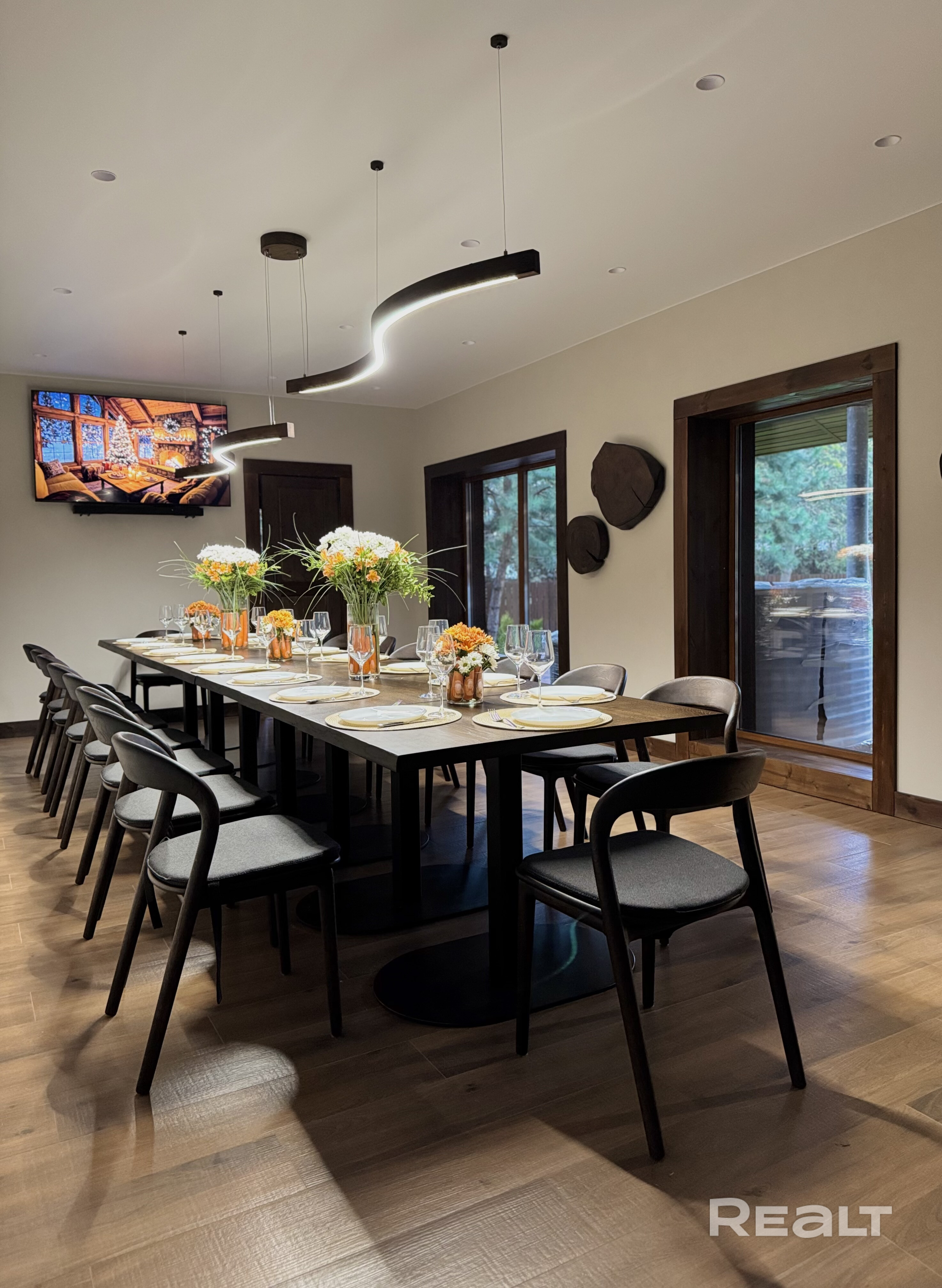 Удобная рассадка и близость к банной зоне позволяют гостям легко чередовать застолье, общение и SPA-отдых, не покидая комплекса.
