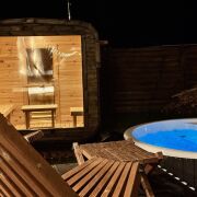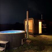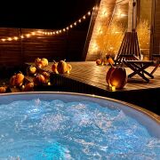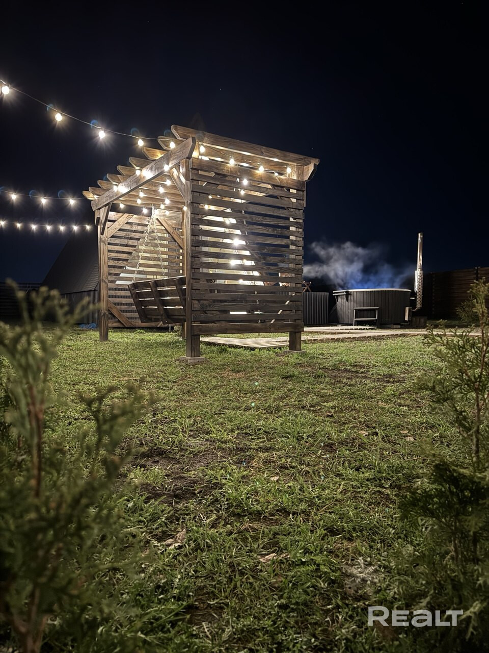 аш идеальный отдых в треугольном доме A-Frame — где каждая деталь создана для вашего комфорта и эстетики Теплая вода, мерцание звезд над головой и нежные пузырьки джакузи словно массажируют душу