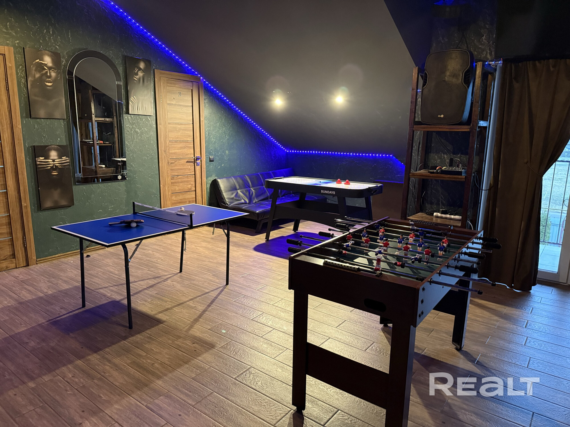 Русская парная на дровах; Большой бассейн (5*3)с подсветкой, подогревом воды. Отдельная душевая, подвесная кадка с холодной водой; На первом этаже зона отдыха с кухней, бытовой техникой; На втором этаже оборудована комната отдыха с профессиональной акустикой, аудио аппаратурой, есть караоке, два микрофона, мягкая мебель; Работаем круглосуточно по предварительной записи; Посуточная и почасовая аренда.