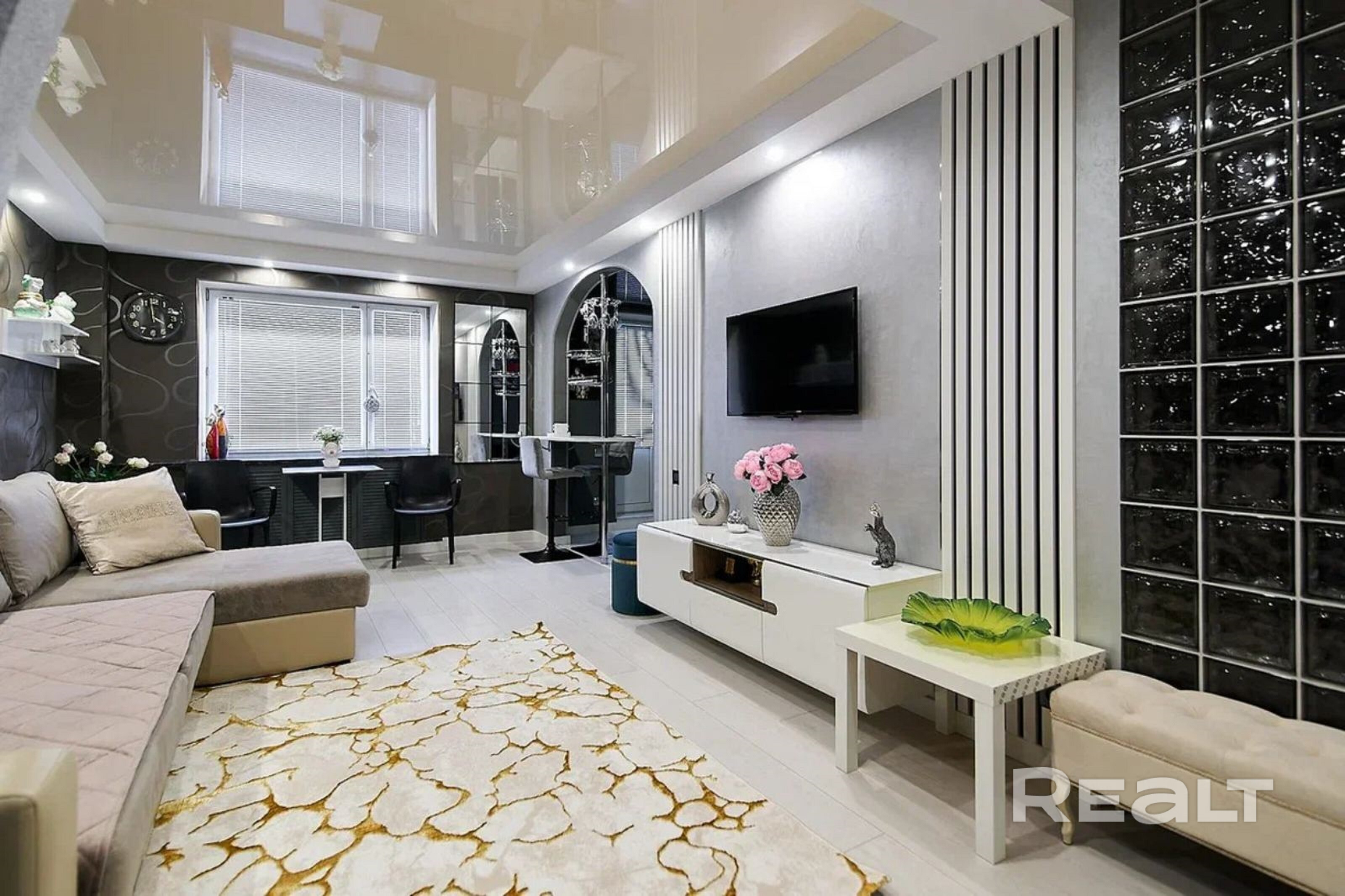 Стильная Premium-студия в центре с отдельной спальней и огромной ванной!Новый дизайн-ремонт из дорогих,качественных материалов,первые заселения!Гостинная обьединена с кухней барной стойкой,что создает определенный конфорт и уют.Вся бытовая техника,итальянский кухонный гарнитур,кожанный диванчик,вся бытовая техника,красивая посуда,есть лоджия.Гостинная оснащена кабельным ТВ,телевизор Soni,200 программ,напротив огромный,расскладной диван на уровне большой полноценной кровати,пружинный блок,тумба под тв,новый обеденный стол с дизайнерскими стульями,одноместный,новый диванчик.Отдельная просторная спальня оснащена огромной,двухспальней кроватью king-size,абсолютно новый,высокий ортопедический матрас,две прикроватные тумбочки,комод,шкаф для одежды,новый косметический столик с дизайнеским стулом,шторы блекаут.Огромная ванная комната 12м,большая угловая ванна,в которую может поместиться два человека,гигиенический душ,средства гигиены,огромное зеркало на всю стену,стиральная машина,новая сантехника.Во дворе есть охраняемая,крытая парковка для машин,которая хорошо видна из окна.Престижный район,5 минут езды до Немиги,тусовочной ул.Зыбицкой,проспекта Победителей,т.ц.Галереи,Дворца Спорта,афедрального Собора,5 минут до проспекта Независимости,15 минут до вокзала,40 минут до аэропорта.В апартаментах идеальная чистота,в которых очень уютно и конфортно находиться!Спальних мест 2+1.Курение в апартаментах и на лоджии полностью исключено!Будем рады дорогим,адекватным гостям!