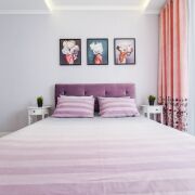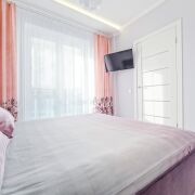 Апартаменты в сердце жилого комплекса «Маяк Минска», рядом со ст. метро «Восток». В шаговой доступности множество кафе, ресторанов, кинотеатр «Velcom cinema», гипермаркет «Green», дом милосердия. Вечером приятно прогуляться по центральной аллее Picasso идущая к поющим фонтанам. Квартира оснащена современной встроенной техникой - холодильник, духовой шкаф, варочная панель, печь СВЧ, электрочайник. Ванная комната оборудована стиральной машиной, двухместной ванной. В вашем распоряжении фен, шампунь, гель для душа, тапочки. Так же есть большой телевизор SMART TV. В номере всегда свежее постельное белье и полотенца. В спальне большая кровать с комфортным матрасом и удобными подушками и телевизор со SMART TV .