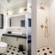 * Ванная комната с современной сантехникой, душевой, биде и стиральной машиной.