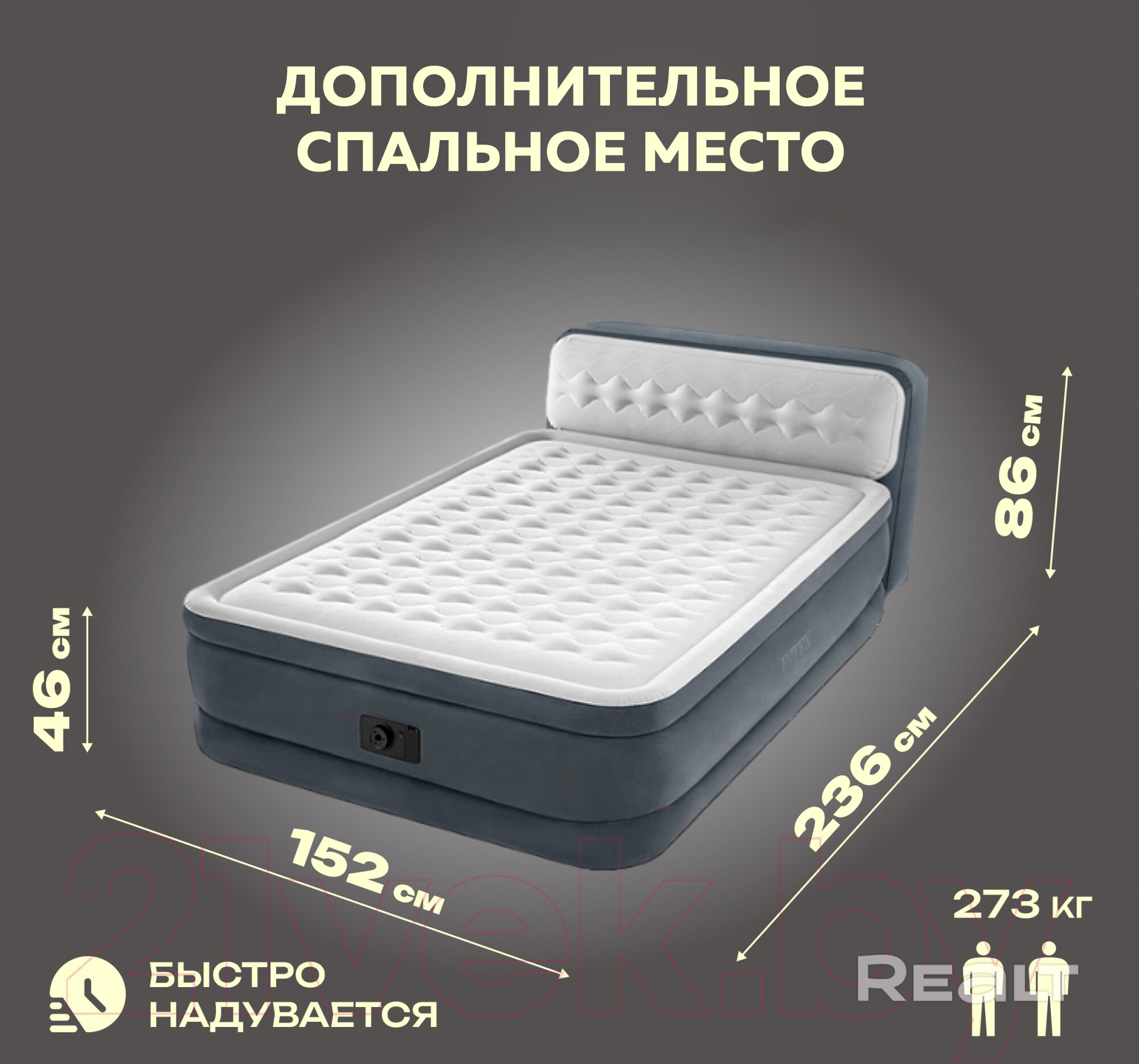 • Двуспальная кровать 160*200, при необходимости - надувная кровать 150*200 с электронасосом