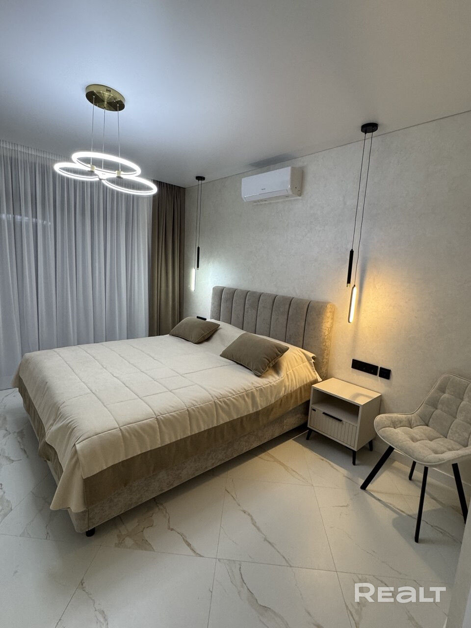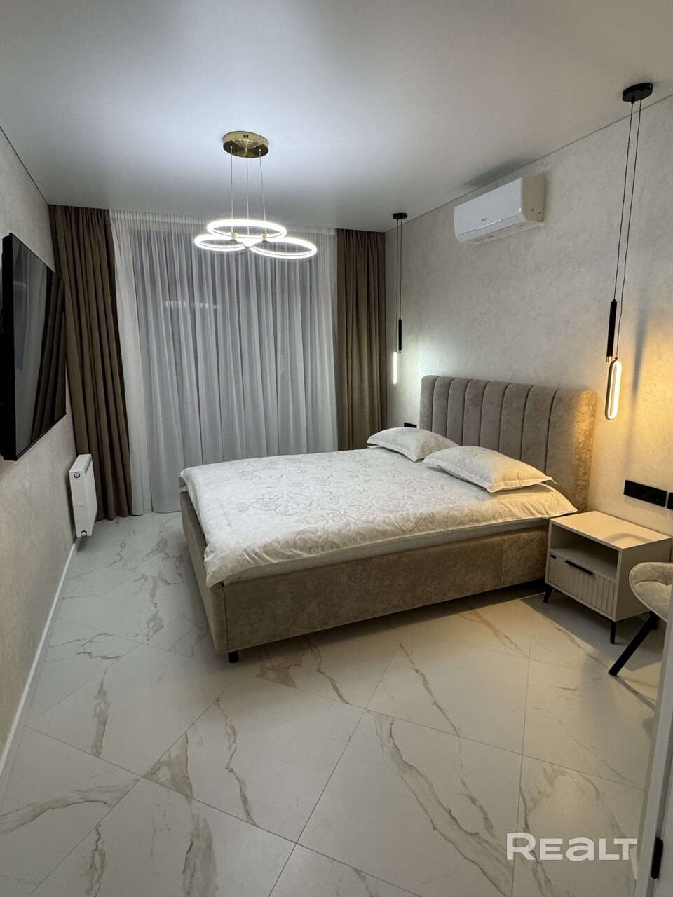 В сердце растущего микрорайона Минска — стильный дом с панорамными окнами, где каждый день для гостей превращается в мини-отпуск. Современный фасад из стекла и камня манит в уютный интерьер: просторные, уютные 2-х комнатные апартаменты с king-size кроватью, раскладными диванами для компании, полностью оборудованной кухней (плита, холодильник, морозильник, кофемашина, микроволновка, посуда на 6 персон) и стильными санузлами с душевой кабиной, ванной, замечательной косметикой по уходу, полотенцами и феном.