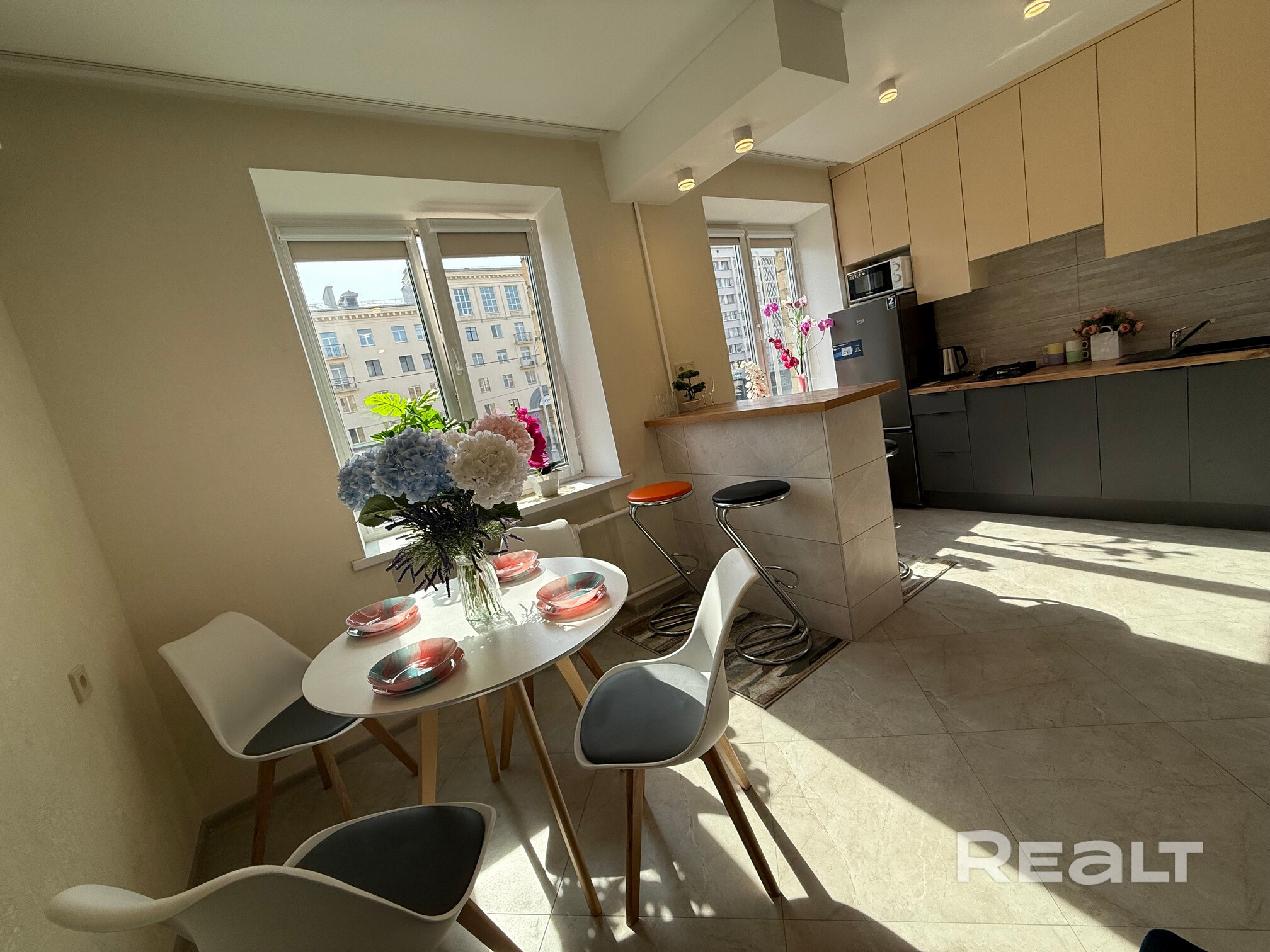 Квартира в центре Минска, метро «Академия наук» и парк «Челюскинцев». В доме, где расположена квартира, есть ресторан «Васильки».