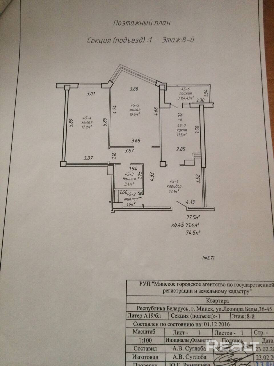Просторная 2хкомнатная квартира 74,4 кВ.м в новом доме с хорошим ремонтом на ул. Беды