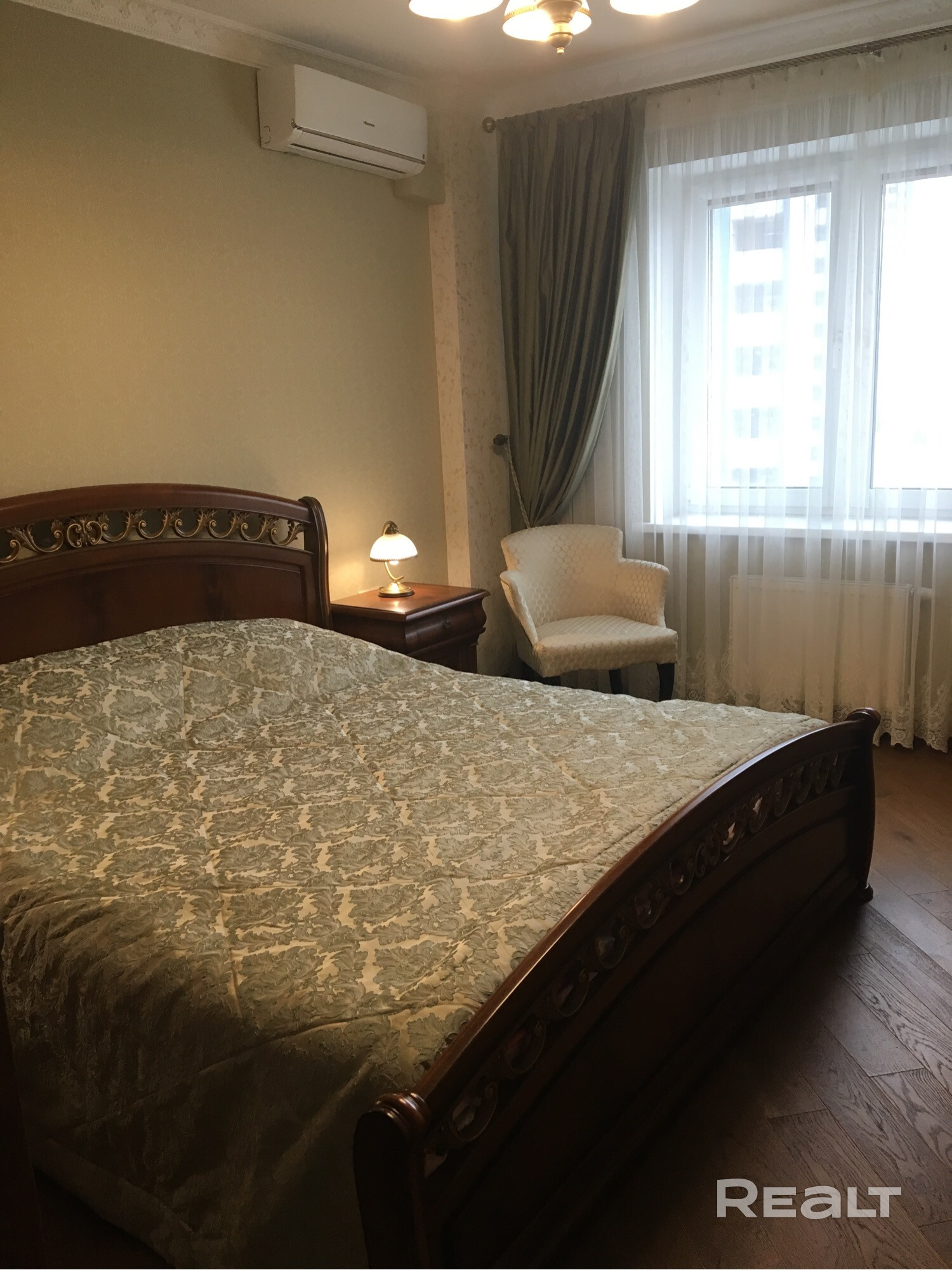 Сдам уютную благоустроенную квартиру в современном классическом стиле,со всеми удобствами.В отделке использовались экологичные материалы;пол, двери натуральное дерево (дуб), итальянская плитка и сантехника. В квартире установлены два кондиционера.Три большие гардеробные с плечиками для одежды.Просторная гостиная с комфортным диваном и камином.Дом расположен в удобном месте, в шаговой доступности много магазинов, кафе,аптеки, поликлиника,центральное отделение Беларусбанка, фитнес-клуб World class