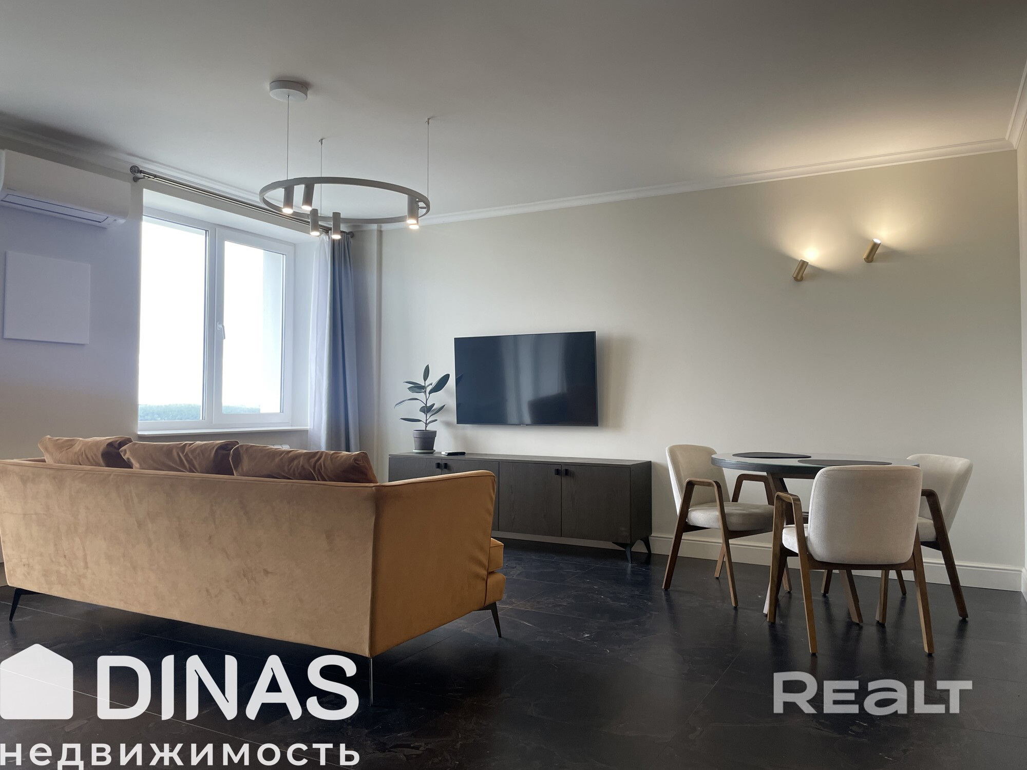 Сдаётся 2-ух комнатная квартира в уникальном жилом комплексе «D3», по адресу пр-т Победителей, 135Б. В квартире выполнен стильный дизайнерский ремонт из качественных материалов. Полная комплектация всей необходимой для комфортного проживания мебели и бытовой техники. Оборудована гардеробная комната. Две просторная лоджии с французскими окнами открывают великолепный вид на зеленую зону, проспект и водоем. Для удобства жильцов лифты опускаются на этажи паркинга.