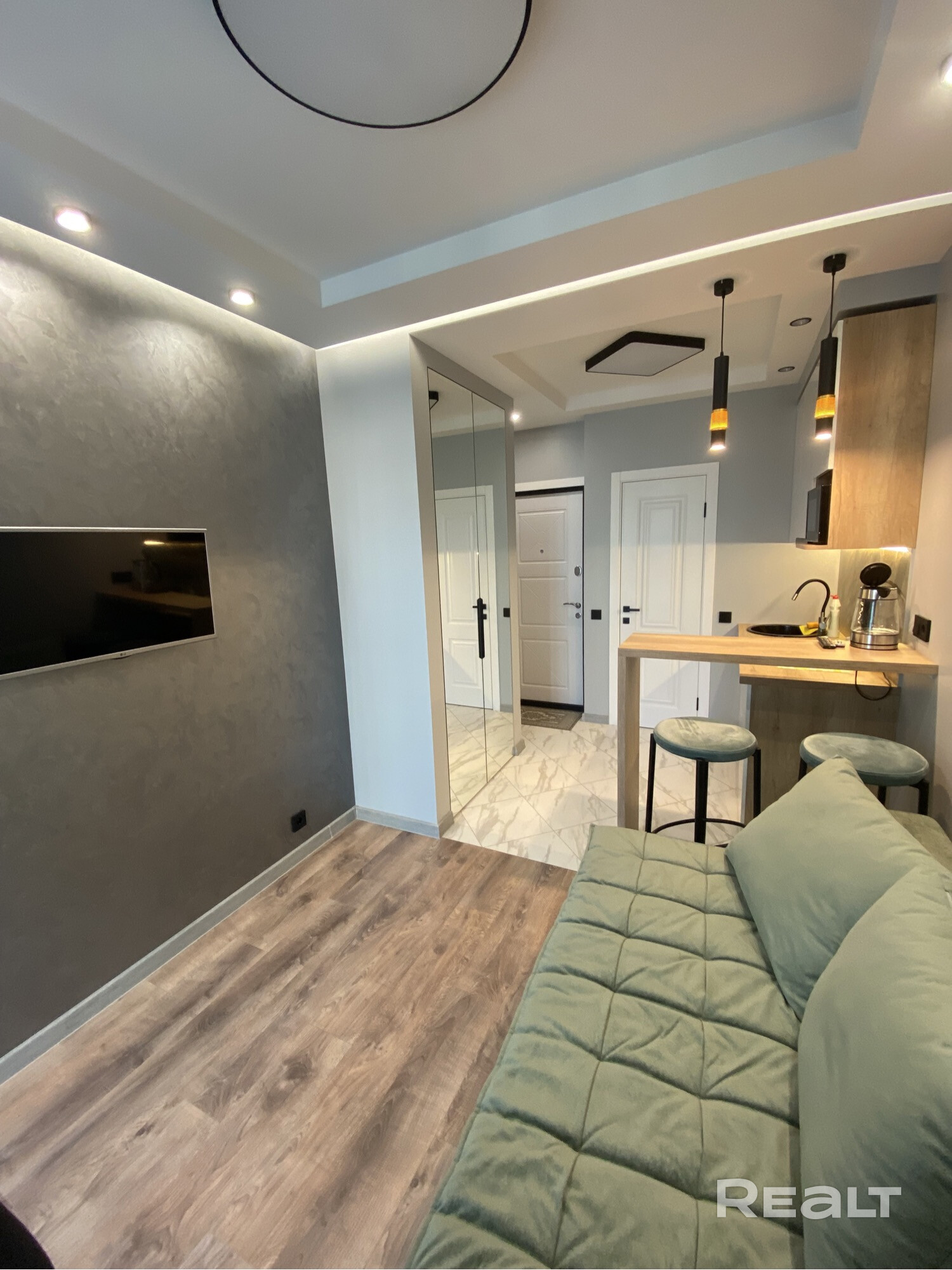 Сдам современную студию с хорошим ремонтом. Через дорогу магазин, возле дома остановка с развитой транспортной веткой, рядом метро. Телевизор LG Смарт тв, YouTube. Кухня оснащена индукционной варочной панелью, имеется вся посуда и кухонная утварь, вытяжка. Ванная комната укомплектована стиралкой LG с функцией пара, стеклянной душевой кабиной, имеется набор полотенец . Для сна есть удобный раскладной диван. Условия для заселения: 1человек (только гражданин РБ), без детей, без животных, не курящий