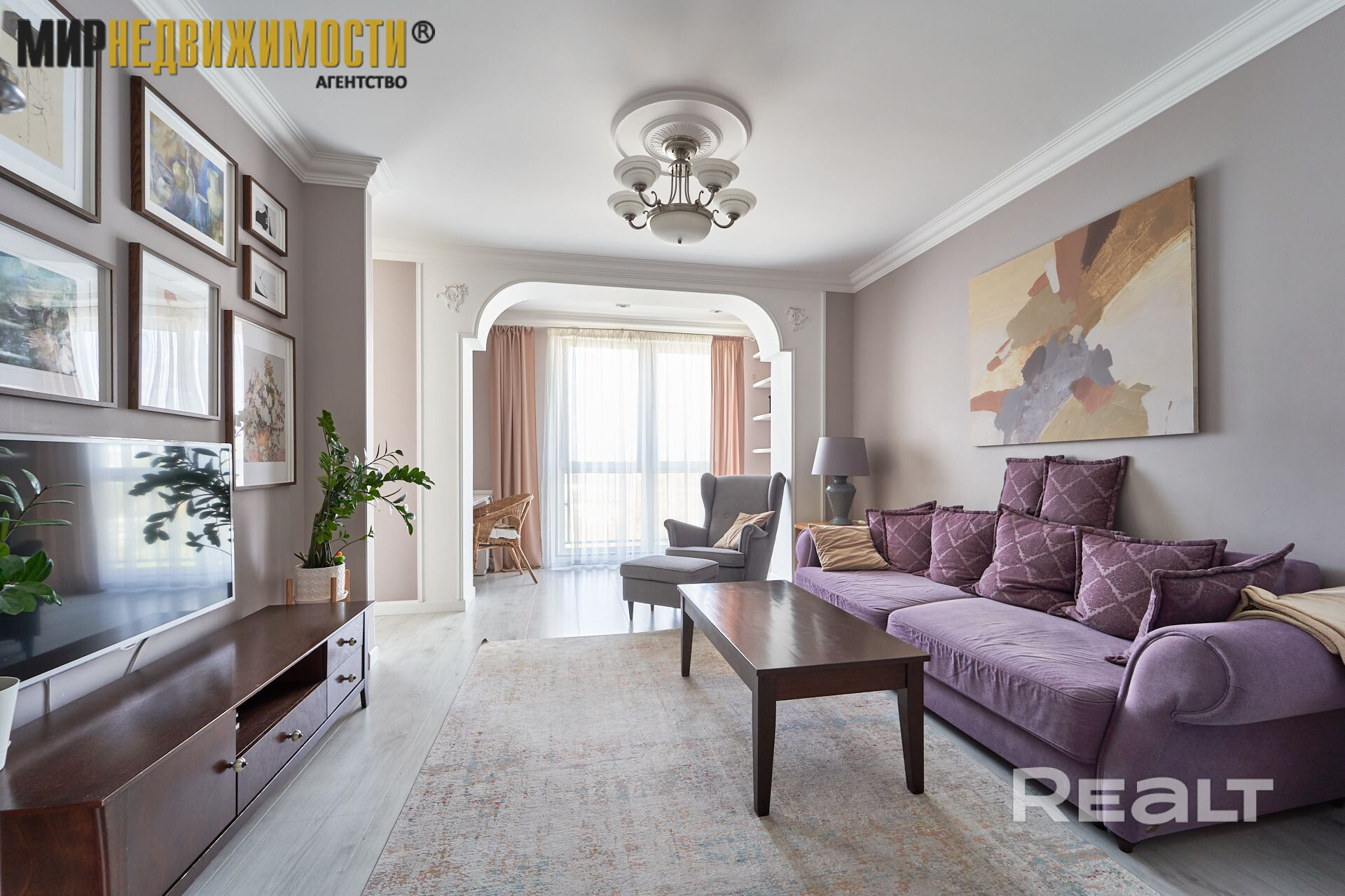 В квартире 2 изолированные комнаты, просторная кухня-гостиная с выделенной рабочей зоной. Два совмещенных санузла, один из которых оснащен душевой кабиной, второй – ванной. Квартира полностью укомплектована всей необходимой мебелью и техникой: посудомоечная, стиральная машина, духовой шкаф, телевизоры, электрокамин. Панорамные окна.