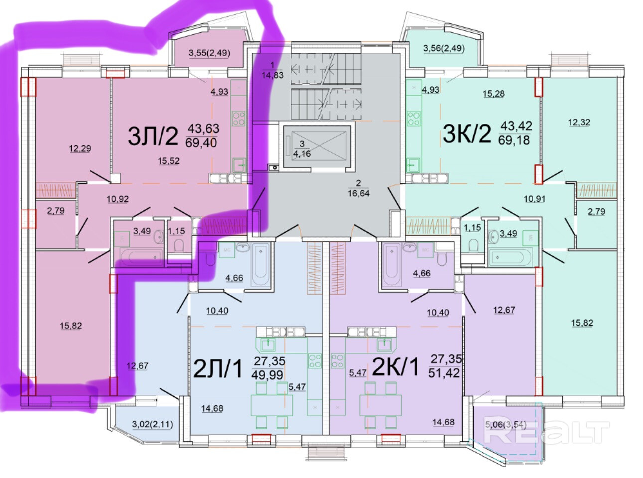 69.4 м²