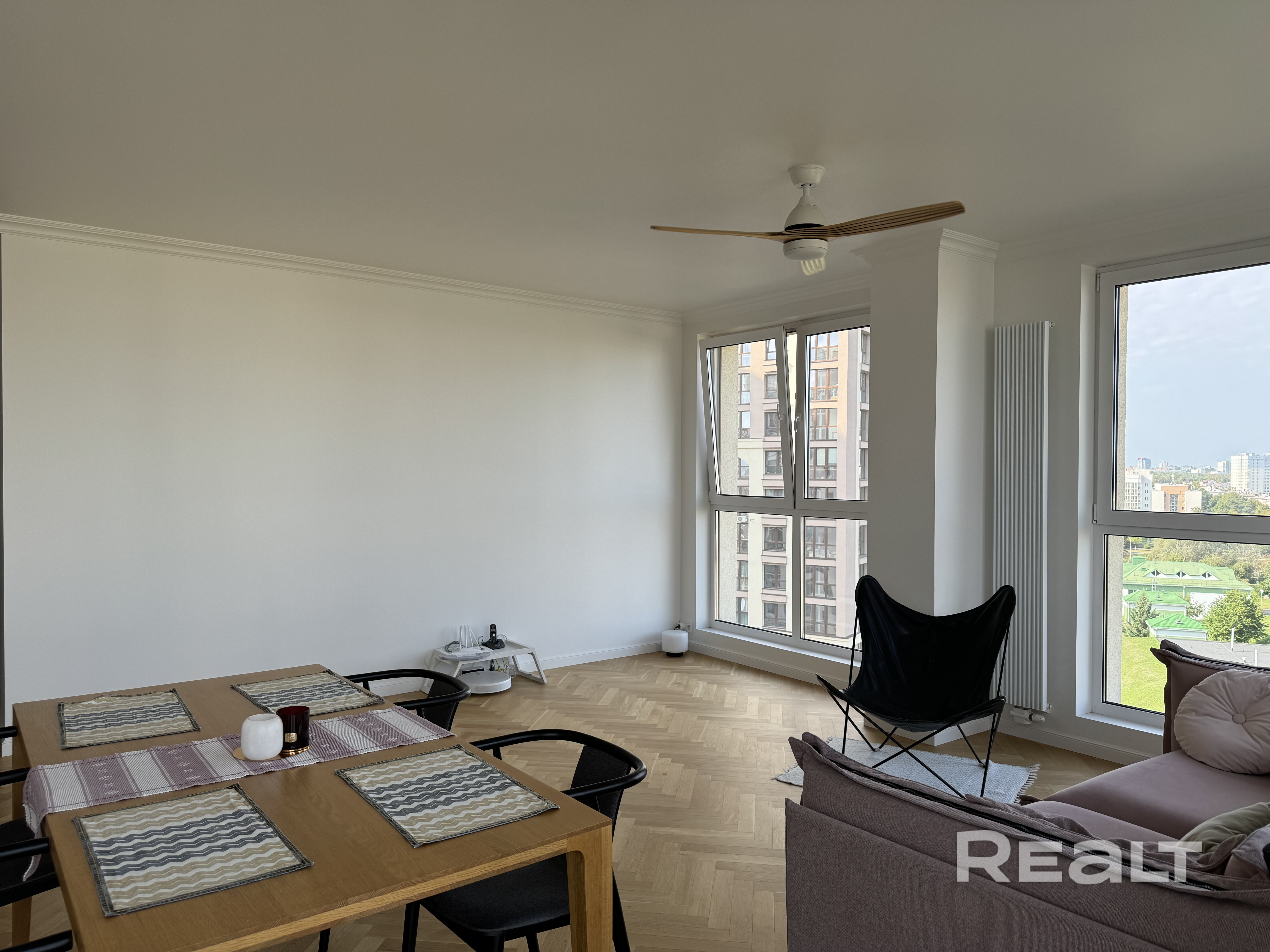 Сдаётся дизайнерская 3-комн. кв. на ул. Макаёнка. 1100 дол + коммуналка (при оплате за 6 мес — 1050 дол по курсу НБРБ). Заселение с 21.10.25. 5 мин до м. Московская и парка Челюскинцев, вид на пр. Независимости и Нац. библиотеку. 2 санузла, каменная ванна, паркет, каменные столешницы, проектор с большим экраном, увлажнитель и очиститель воздуха. Детская может быть спальней, игровой или кабинетом. Полностью укомплектована техникой и посудой. Сдаётся по договору и на длит. ср. Писать в Вайбер
