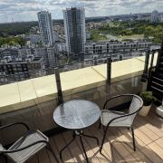 С 1 марта на месяцы сдается пентхаус на 20 этаже на бульваре Пикассо , с панорамным остеклением и высотой потолков 4 метра ,оборудованной террасой 42 метра с выходом из гостиной и спальни , видом на лес и водную систему. Мебель и двери орех. Шкафы для одежды , комоды. Светильники Италия, сантехника Villeroy, двуспальная кровать орех, диван Фурман , тв диагональ 220 см , скорость А1. 300 мб/сек, кофемашина , стиральносушильная машина, посудомоечная машина Bosh, духовка и СВЧ, холодильник