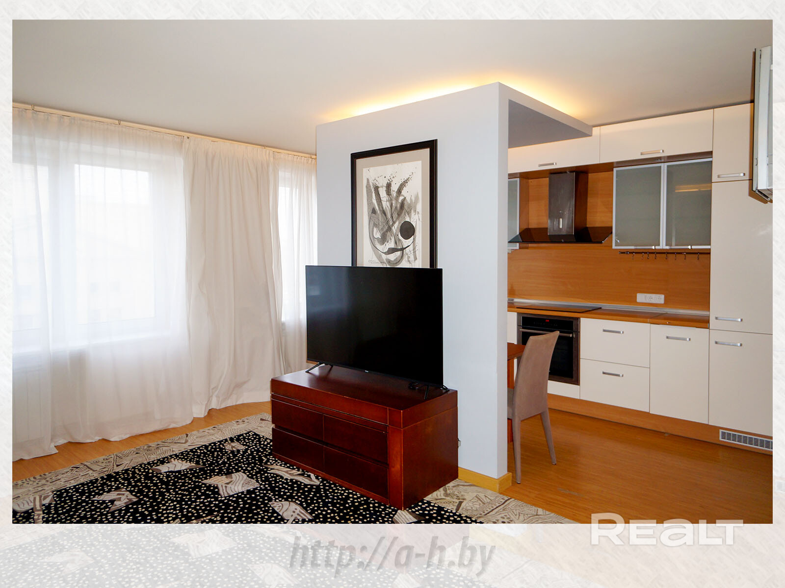 Квартира, готовая к проживанию, с хорошей планировкой, окнами, выходящими на обе стороны дома и большой лоджией на две комнаты. Оборудована качественной бытовой техникой, в комнатах - кондиционеры, а в ванной - аккуратно спрятаны стиральная машина и сушилка. Из кухни-гостиной отрывается замечательный вид на Дом офицеров и Александровский сквер. Въезд на парковку - через шлагбаум.
