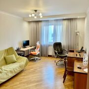 По техпаспорту 4-комнатная квартира с отличной планировкой на 9/16 этаже. По факту: Две отдельные спальни, кабинет и просторная кухня-гостиная с полным набором мебели и техники. Ремонт сделан в классическим стиле. Все в отличном состоянии. Товарищество собственников, прописан один человек. Есть свое парковочное место. На длительный срок.