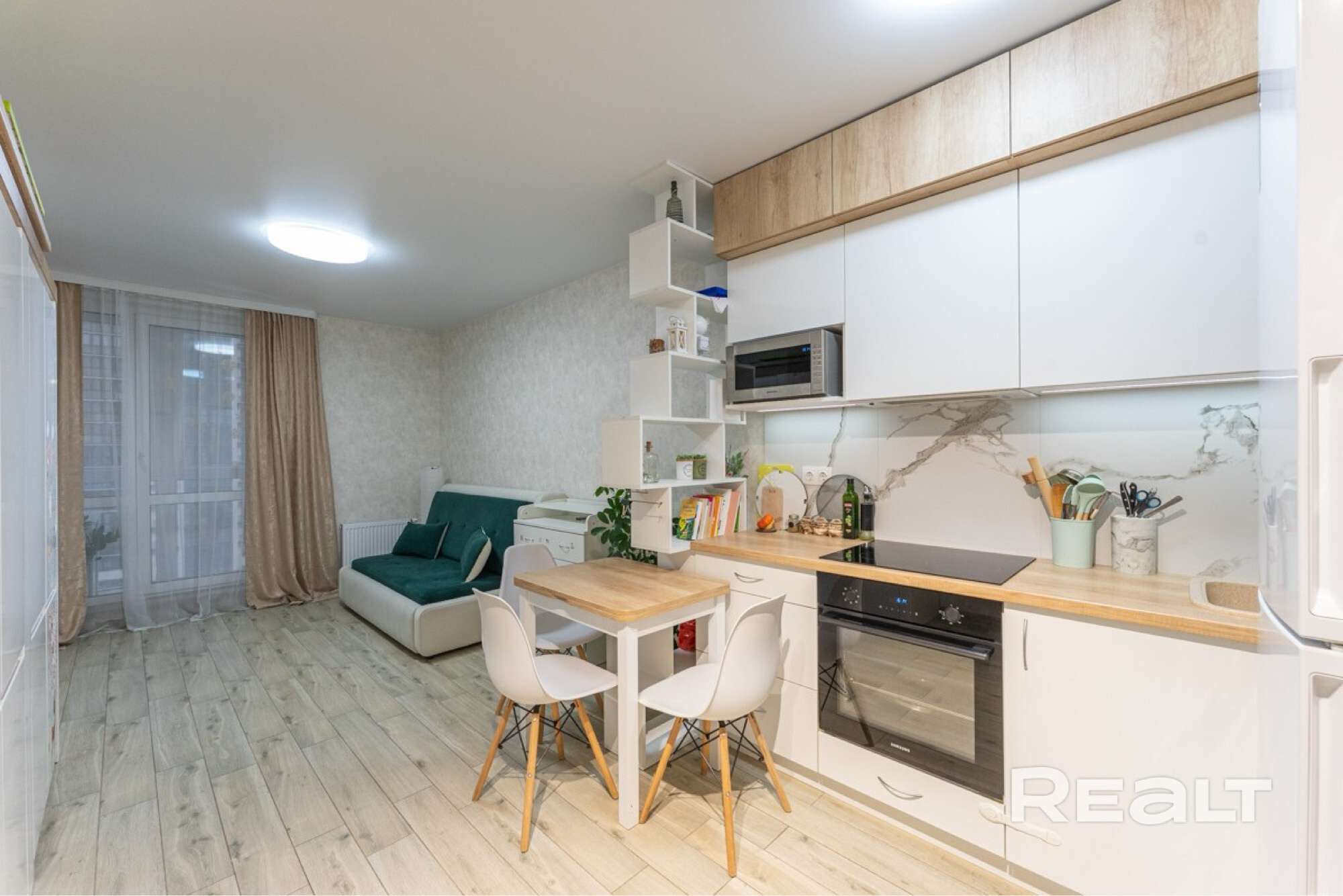 Сдаётся уютная квартира на 9 этаже 25-этажного дома (30 м²). Современный ремонт. Полностью укомплектована мебелью и техникой: плита, духовка, холодильник, телевизор, диван-кровать, шкафы и т.д. Не южная сторона - летом не душно. Светлый балкон. Отличный вид. Дом 2021 года, все ремонты закончен. Удобное расположение: 15 мин пешком до метро. Только долгосрочная аренда от года. Собственник. Квартира свободна с 17 марта.