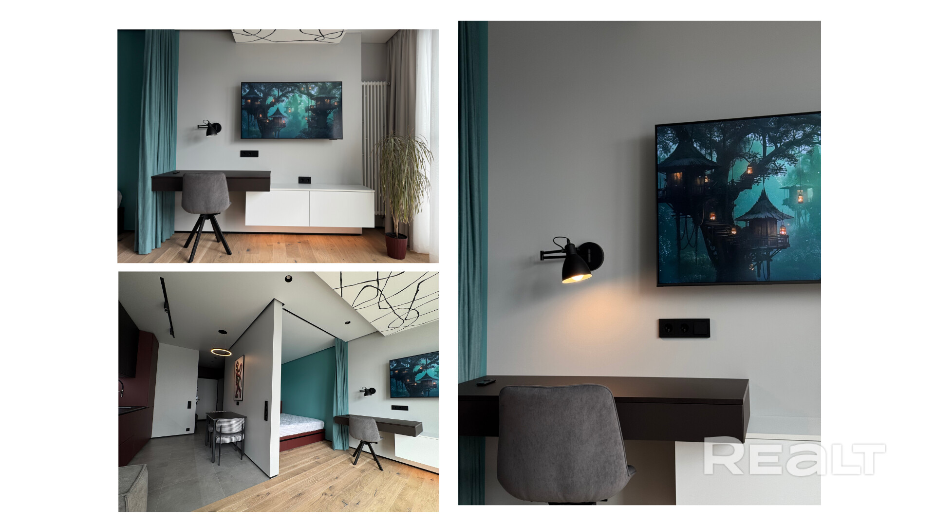 дизайнерская квартира-студия в Минск Мир - 3 минуты до метро Аэродромная! - последний 25 этаж / большое панорамное окно на восток. - 38 м², звукоизоляционная входная дверь с умным замком, фильтр питьевой воды, фильтры для воды на вводе. - звукоизоляция, теплый пол, кондиционер встраиваемая техника, отдельная гардеробная. окна от застройщика менялись на супер-теплый пакет с утолщенными стеклами (по 6мм). Cвободна с 15 июля 2025 года.