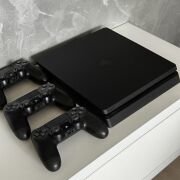 — Ультра тонкий телевизор LG OLED с диагональю 65 и аудиосистема Sony "домашний кинотеатр 5+1" и игровая приставка sony playstation 4, расположены перед мягким кожанным диваном для всей семьи привезенным под заказ из Европы.