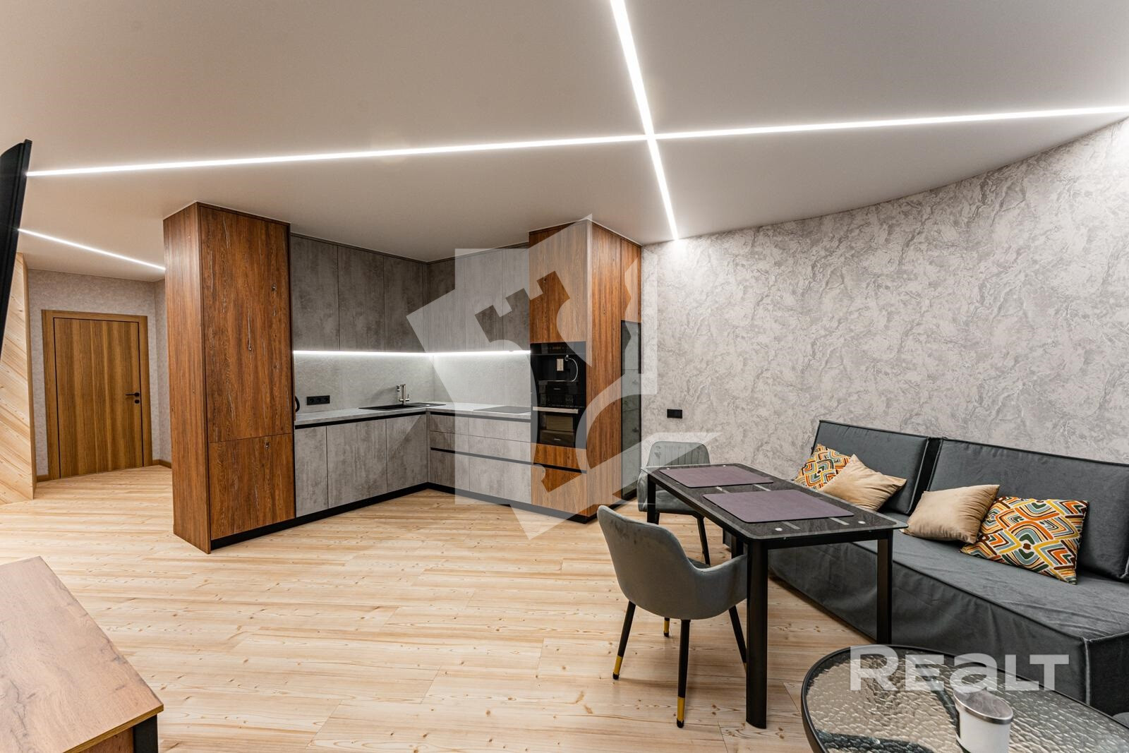 - Гостиная объединена с кухней – стильное и уютное пространство для отдыха