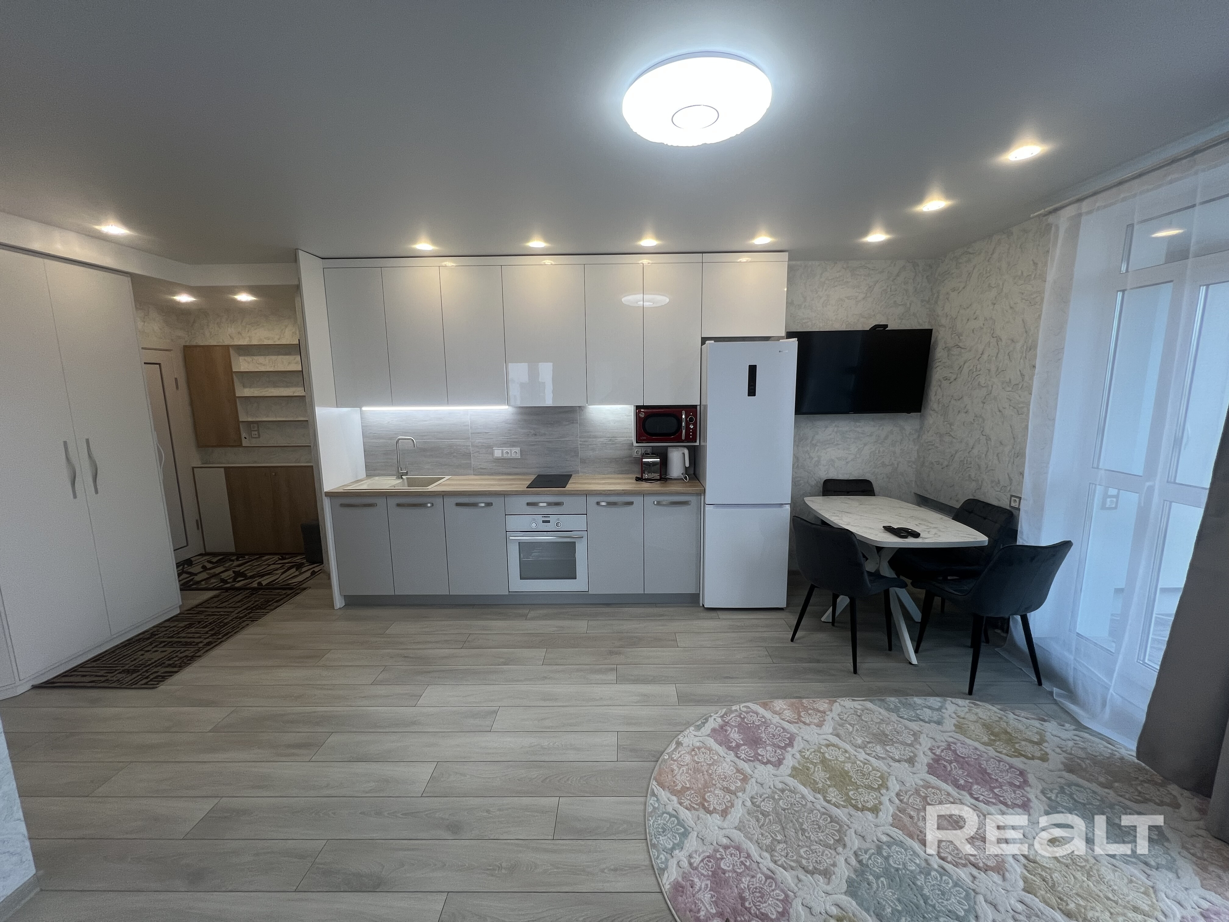 Сдаётся новая только после Дизайнерского ремонта просторная 3-х. комнатная квартира-студия с хорошим ремонтом и мебелью. Вы Первые кто будет в ней жить!!! С красивым видом на город, на 25 этаже по ул. Н. Теслы, рядом метро в шаговой доступности 3 минуты пешком!!!