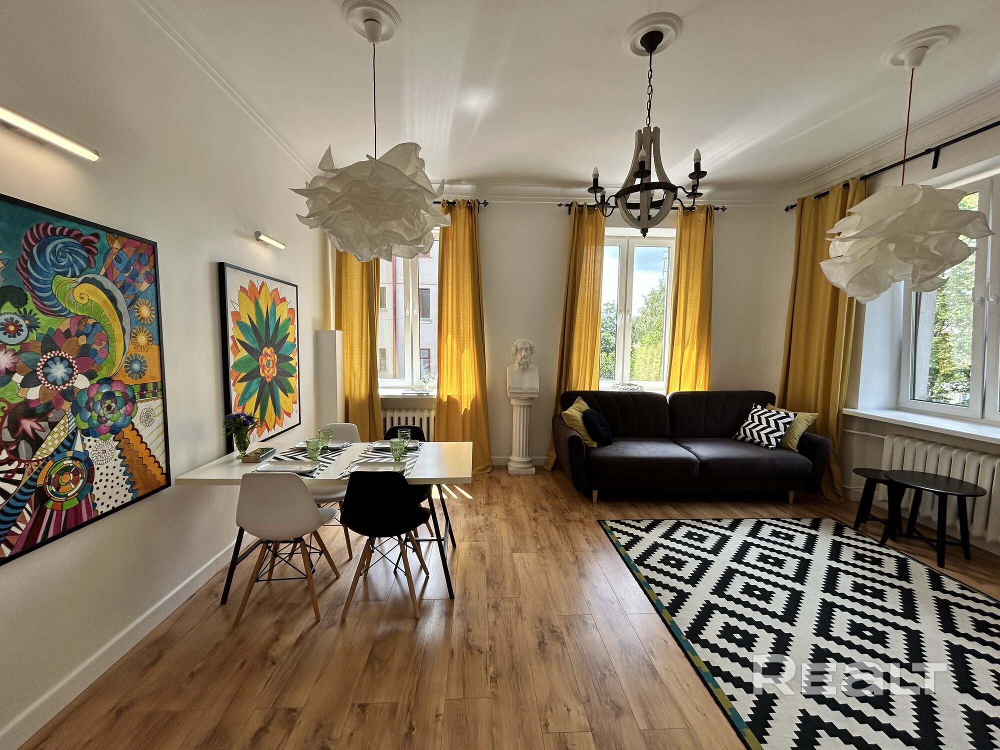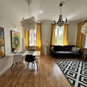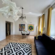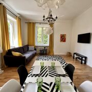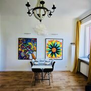 Премиальная 2х комнатная просторная квартира в самом центре. Выход из подъезда прямо на главный проспект. Квартира на последнем (5-м) этаже с лифтом (!). Окна, выходят на три стороны во двор и парк, в квартире всегда тихо. Две раздельные комнаты (новая кровать с ортопедическим матрасом и удобный широкий раскладной диван-кровать. Раздельный санузел. В ванной - душевая кабина. Кабельное смарт ТВ, WiFi (до 500 Мбит), полностью оборудованная отдельная кухня. Сдается на один месяц.