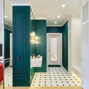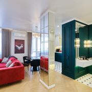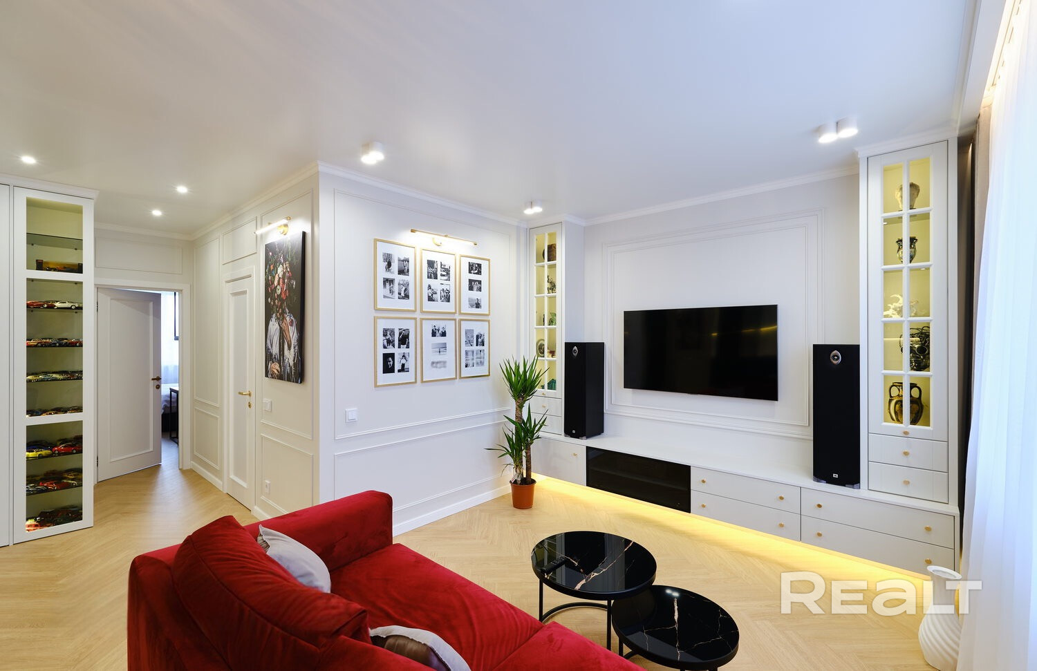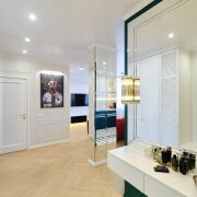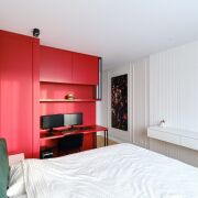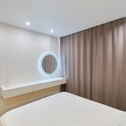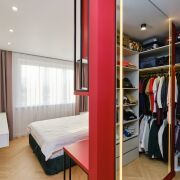 - спальня с большой кроватью , рабочим местом и отдельной гардеробной