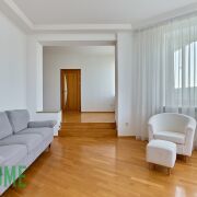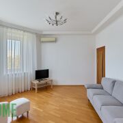 Высота потолков 3 м. Выполнен свежий ремонт, использованы натуральные материалы. Окна на две стороны – восток и запад. Три отдельные спальни, зона гостиной и кухни, два санузла, гардероб, две лоджии. Квартира оборудована всей необходимой техникой, установлен бойлер и кондиционер.