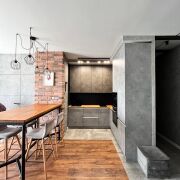 Встроенная кухня с полноразмерным холодильником, микроволновкой, духовкой