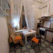 Просторная 55 метров. За счет больших окон и высоких потолков (3.5 м) в квартире много света и воздуха. 2 раздельные комнаты,каждая из которых закрывается на ключ,раздельный санузел,уютная кухня укомплектованая посудой и бытовой техникой, подключен интернет.