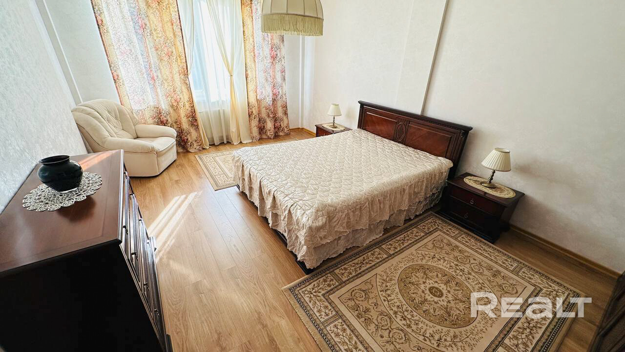 3-х комнатная квартира на ул. Пионерская, 7. Площадь 120 м2. 3 этаж 5-ти этажного дома. 2 спальни и гостиная, 2 санузла, две лоджии застекленные, много места для хранения. В квартире все сделано из натуральных материалов. Есть парковочное место в гараже. Дом расположен в самом престижном районе города Минска, Дрозды. Рядом торговый центр Арена Сити, парк, спортивный комплекс Минск Арена, зеленая зона, велодорожка, озеро. Отлично развитое транспортное сообщение позволяет за 15 минут добраться до центра города. Коммунальные платежи оплачивает арендатор.